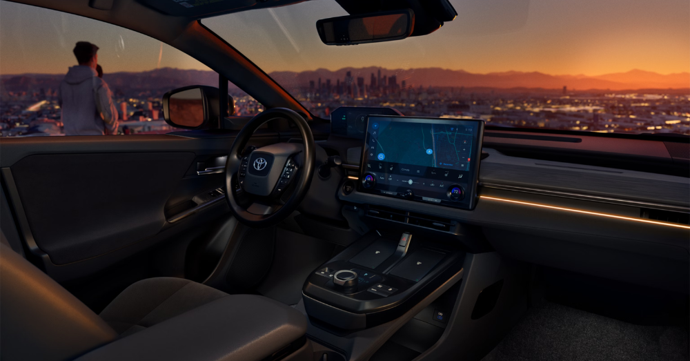 Toyota made serious upgrades to the interior. That dashboard features a tiered design with a 14-inch touchscreen, horizontal air vents, and a floating center console. The digital instrument cluster sits recessed behind the steering wheel.