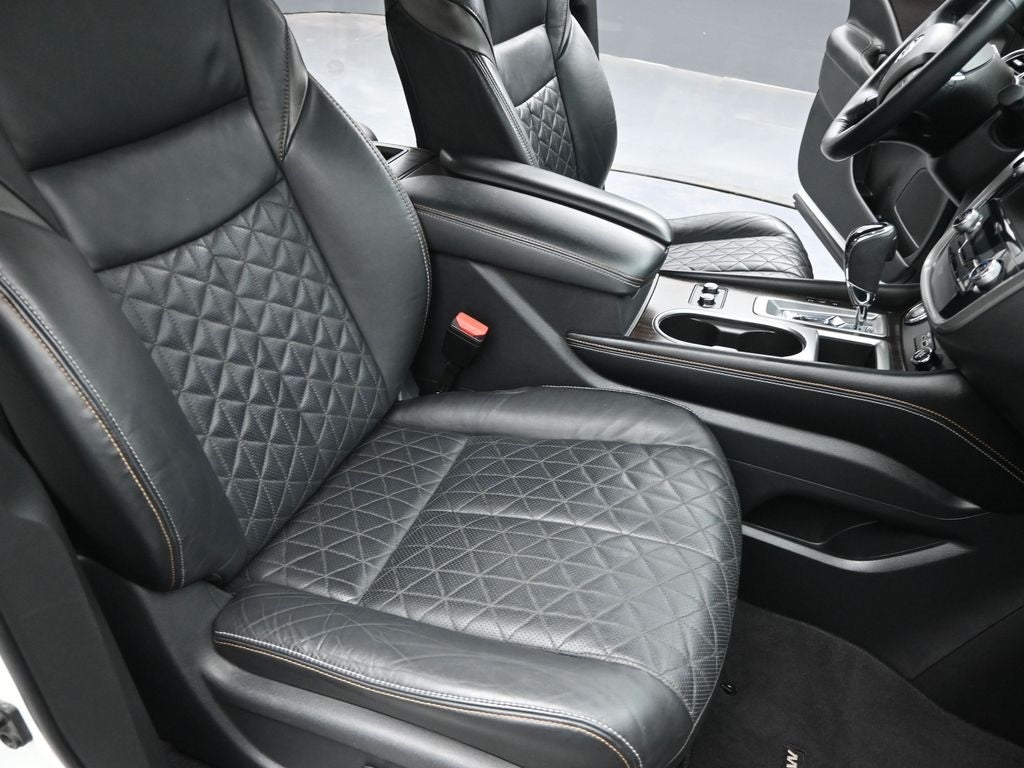**NAVIGATION**, **APPLE CARPLAY**, **ANDROID AUTO**, CVT with Xtronic, Cargo Area Protector, Cargo Net, Cargo Package, First Aid Kit, Heated & Ventilated Front Bucket Seats, Heated front seats, Heated rear seats, Navigation system: NissanConnect Navigation, Power Liftgate, Power moonroof, Retractable Cargo Cover, Semi-Aniline Leather-Appointed Seat Trim, Ventilated front seats, Wheels: 20 Satin Black Alloy, 11 Speakers, 4-Wheel Disc Brakes, 4.667 Axle Ratio, ABS brakes, Air Conditioning, Alloy wheels, AM/FM radio: SiriusXM, AM/FM/CD/MP3/WMA Audio System, Auto High-beam Headlights, Auto tilt-away steering wheel, Auto-dimming Rear-View mirror, Automatic temperature control, Blind Spot Warning, Brake assist, Bumpers: body-color, Carpeted Floor Mats & Carpeted Cargo Mat, CD player, Child-Seat-Sensing Airbag, Delay-off headlights, Driver door bin, Driver vanity mirror, Dual front impact airbags, Dual front side impact airbags, Electronic Stability Control, Emergency communication system: NissanConnect Services (first 6 months included), Exterior Parking Camera Rear, Four wheel independent suspension, Front anti-roll bar, Front Bucket Seats, Front Center Armrest, Front dual zone A/C, Front fog lights, Front reading lights, Fully automatic headlights, Garage door transmitter: HomeLink, Heated door mirrors, Heated steering wheel, Illuminated entry, Knee airbag, Low tire pressure warning, Memory seat, NissanConnect featuring Apple CarPlay and Android Auto, NissanConnect Services Powered By SiriusXM, Occupant sensing airbag, Outside temperature display, Overhead airbag, Overhead console, Panic alarm, Passenger door bin, Passenger vanity mirror, Power door mirrors, Power driver seat, Power passenger seat, Power steering, Power windows, Radio data system, Rear anti-roll bar, Rear Bumper Protector, Rear reading lights, Rear seat center armrest, Rear side impact airbag, Rear window defroster, Rear window wiper, Remote keyless entry, Roof rack: rails only, Security system, Speed control, Speed-sensing steering, Speed-Sensitive Wipers, Splash Guards, Split folding rear seat, Spoiler, Steering wheel memory, Steering wheel mounted audio controls, Tachometer, Telescoping steering wheel, Tilt steering wheel, Traction control, Trip computer, Turn signal indicator mirrors, Variably intermittent wipers, **BACK UP CAMERA**, **LOCAL TRADE**, **LANE ASSIST**, **BLIND SPOT MONITOR**, **Bluetooth®**, **HEATED SEATS**, **POWER SEAT**, **LEATHER SEATS**, **MOONROOF**, **AWD**, CVT with Xtronic, Cargo Area Protector, Cargo Net, Cargo Package, First Aid Kit, Heated & Ventilated Front Bucket Seats, Heated front seats, Heated rear seats, Navigation system: NissanConnect Navigation, Power Liftgate, Power moonroof, Retractable Cargo Cover, Semi-Aniline Leather-Appointed Seat Trim, Ventilated front seats, Wheels: 20 Satin Black Alloy.