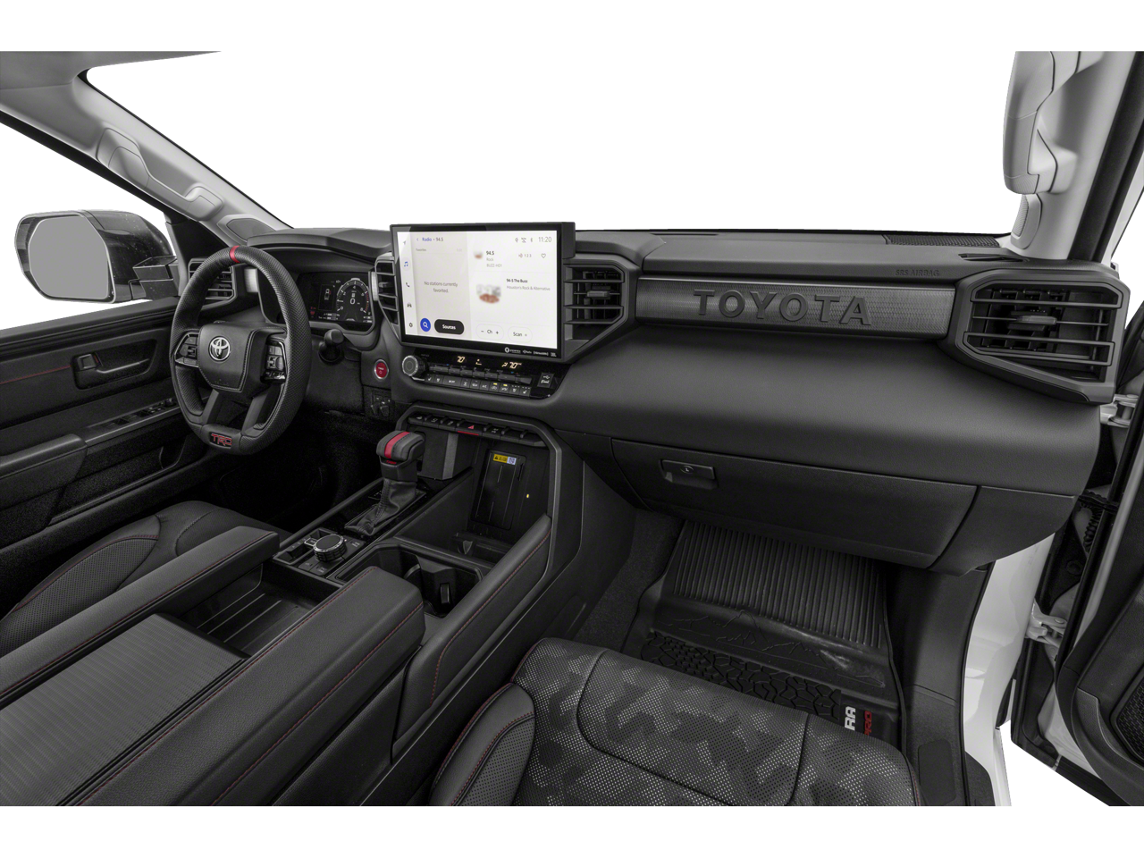 3.4L V6, 12 Speakers, 3.31 Axle Ratio, 4-Wheel Disc Brakes, 400W/120V AC Rear Seat & Bed Power Supply, ABS brakes, Air Conditioning, Alloy wheels, AM/FM radio: SiriusXM, Apple CarPlay/Android Auto, Auto High-beam Headlights, Auto-dimming door mirrors, Auto-dimming Rear-View mirror, Automatic temperature control, Black Dual Exhaust Tips w/Debossed TRD Pro Logo, Brake assist, Bumpers: body-color, Delay-off headlights, Driver door bin, Driver vanity mirror, Dual front impact airbags, Dual front side impact airbags, Electronic Stability Control, Emergency communication system: Safety Connect (10-year trial), Front & Rear Mud Guards, Front anti-roll bar, Front Bucket Seats, Front Center Armrest, Front dual zone A/C, Front fog lights, Front reading lights, Front wheel independent suspension, Fully automatic headlights, Garage door transmitter: HomeLink, Heated & Ventilated Front Bucket Seats, Heated Color-Keyed Outside Mirrors, Heated door mirrors, Heated front seats, Heated steering wheel, Illuminated entry, Knee airbag, Leather Shift Knob, LED Lightbar w/Fog & Marker Lights, Low tire pressure warning, Memory seat, Multi-Terrain Back Monitor, Navigation System, Occupant sensing airbag, Outside temperature display, Overhead airbag, Overhead console, Panic alarm, Passenger door bin, Passenger vanity mirror, Power door mirrors, Power driver seat, Power moonroof, Power Panoramic Roof, Power passenger seat, Power steering, Power windows, Qi-Compatible Wireless Smartphone Charger, Radio data system, Radio: Premium Audio w/JBL, Rear reading lights, Rear seat center armrest, Rear step bumper, Rear window defroster, Remote keyless entry, Security system, Smoked-Finish Premium LED Headlights & DRL, SofTex Seat Trim, Speed control, Speed-sensing steering, Split folding rear seat, Sport steering wheel, Steering wheel mounted audio controls, Tachometer, Telescoping steering wheel, Tilt steering wheel, Towing Technology Package, Traction control, TRD Pro Heated Leather-Trimmed Steering Wheel, Trip computer, Turn signal indicator mirrors, Variably intermittent wipers, Ventilated front seats, Voltmeter, Wheels: 18 x 8 Black BBS Forged Aluminum, 3.4L V6.
