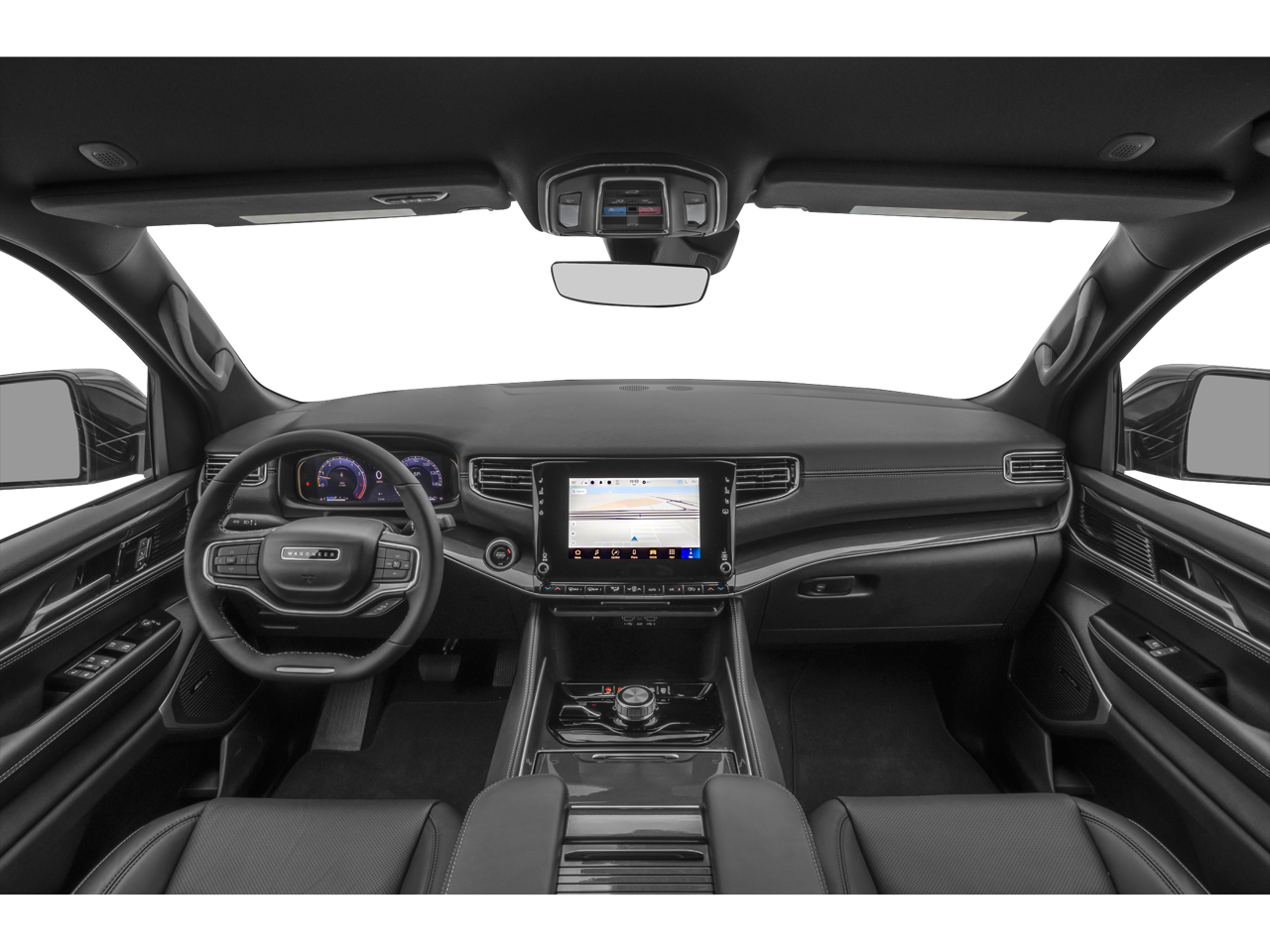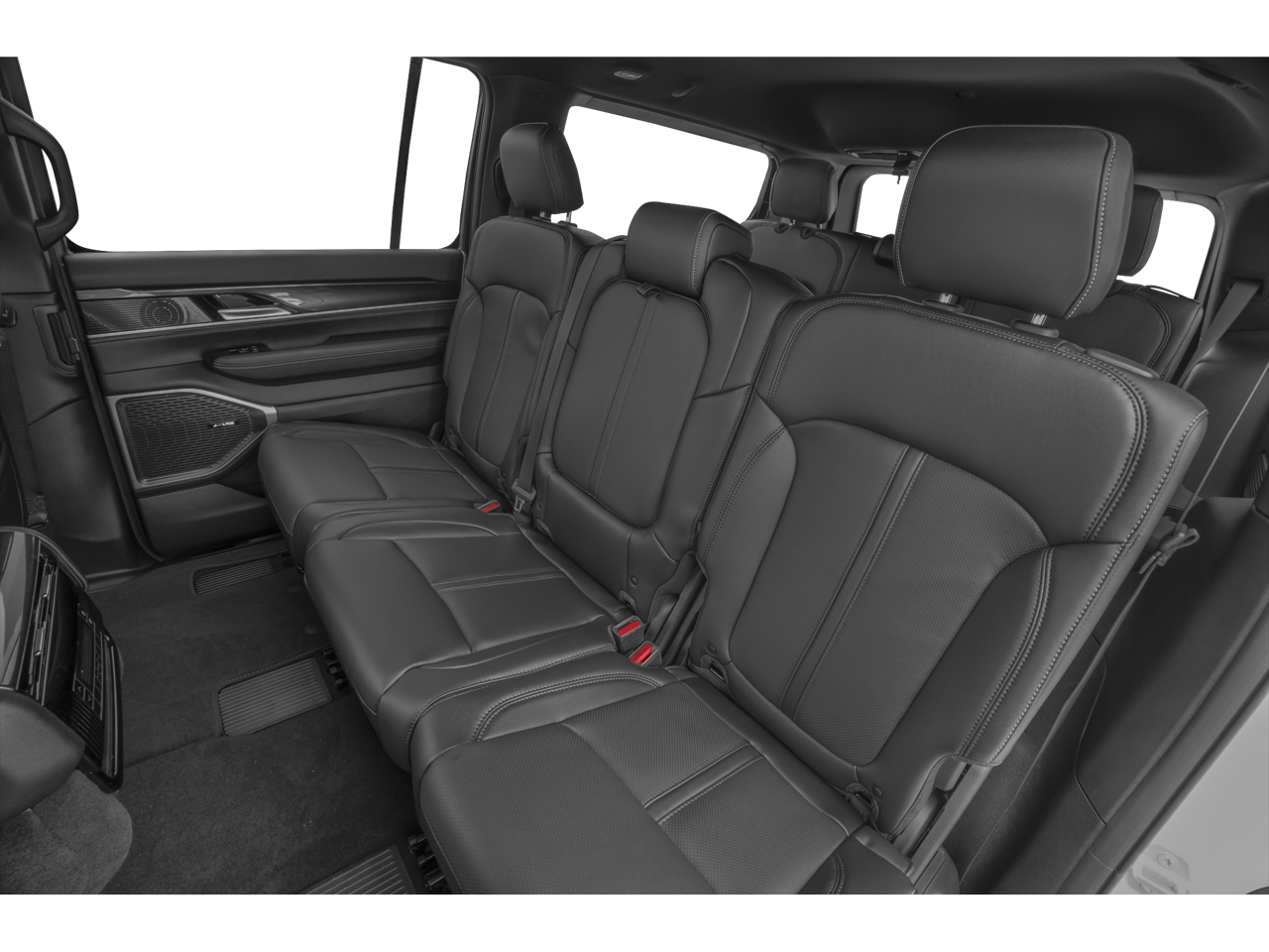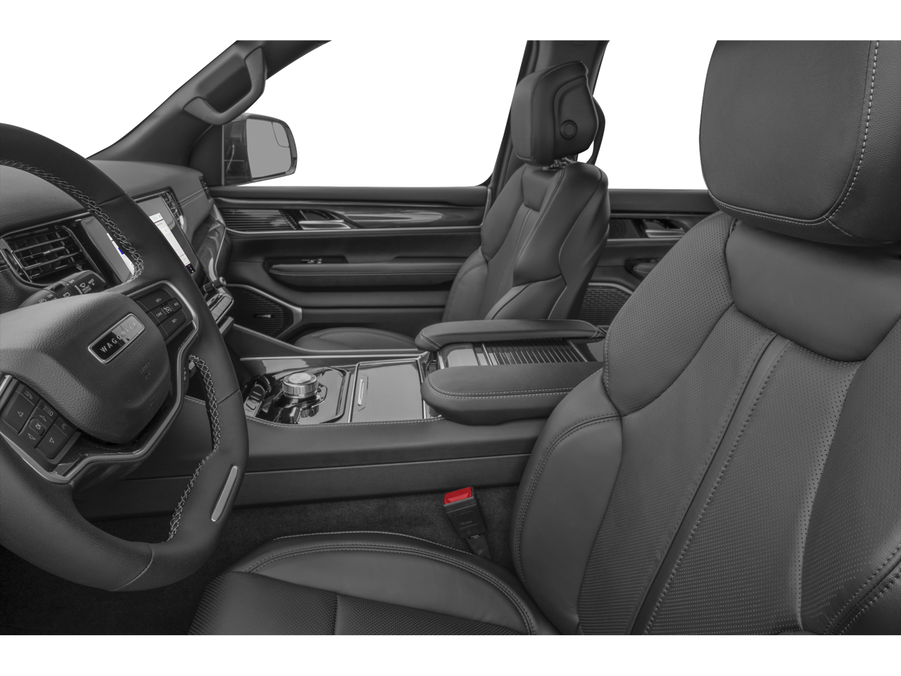 10 Speakers, 118 MPH Maximum Speed Calibration, 3.55 Rear Axle Ratio, 3rd row seats: bench, 4-Wheel Disc Brakes, ABS brakes, Adjustable pedals, Air Conditioning, Alloy wheels, AM/FM radio: SiriusXM with 360L, Anti-whiplash front head restraints, Apple CarPlay/Android Auto, Audio memory, Auto-dimming door mirrors, Auto-dimming Rear-View mirror, Auto-leveling suspension, Automatic temperature control, Brake assist, Bumpers: body-color, Compass, Delay-off headlights, Driver door bin, Driver vanity mirror, Driver's Seat Mounted Armrest, Dual front impact airbags, Dual front side impact airbags, Electronic Stability Control, Emergency communication system: Wagoneer Connect, Exterior Parking Camera Rear, Four wheel independent suspension, Front anti-roll bar, Front Bucket Seats, Front Center Armrest w/Storage, Front dual zone A/C, Front fog lights, Front reading lights, Fully automatic headlights, Garage door transmitter, Genuine wood console insert, Genuine wood dashboard insert, Genuine wood door panel insert, Heated door mirrors, Heated front seats, Heated rear seats, Heated steering wheel, Illuminated entry, Knee airbag, Leather Trimmed Bucket Seats, Low tire pressure warning, Memory seat, Navigation System, Normal Duty Suspension, Occupant sensing airbag, Outside temperature display, Overhead airbag, Overhead console, Panic alarm, Passenger door bin, Passenger seat mounted armrest, Passenger vanity mirror, Pedal memory, Power adjustable front head restraints, Power door mirrors, Power driver seat, Power Liftgate, Power passenger seat, Power steering, Power windows, Quick Order Package 25J, Radio data system, Radio: Uconnect 5 Nav w/10.1 Display, Rain sensing wipers, Rear air conditioning, Rear anti-roll bar, Rear dual zone A/C, Rear reading lights, Rear seat center armrest, Rear window defroster, Rear window wiper, Reclining 3rd row seat, Remote keyless entry, Security system, Speed control, Speed-sensing steering, Speed-Sensitive Wipers, Split folding rear seat, Steering wheel memory, Steering wheel mounted audio controls, Tachometer, Telescoping steering wheel, Tilt steering wheel, Traction control, Trip computer, Turn signal indicator mirrors, Variably intermittent wipers, Ventilated front seats, Voltmeter, Wheels: 20 x 9.0 Premium 2 Aluminum.