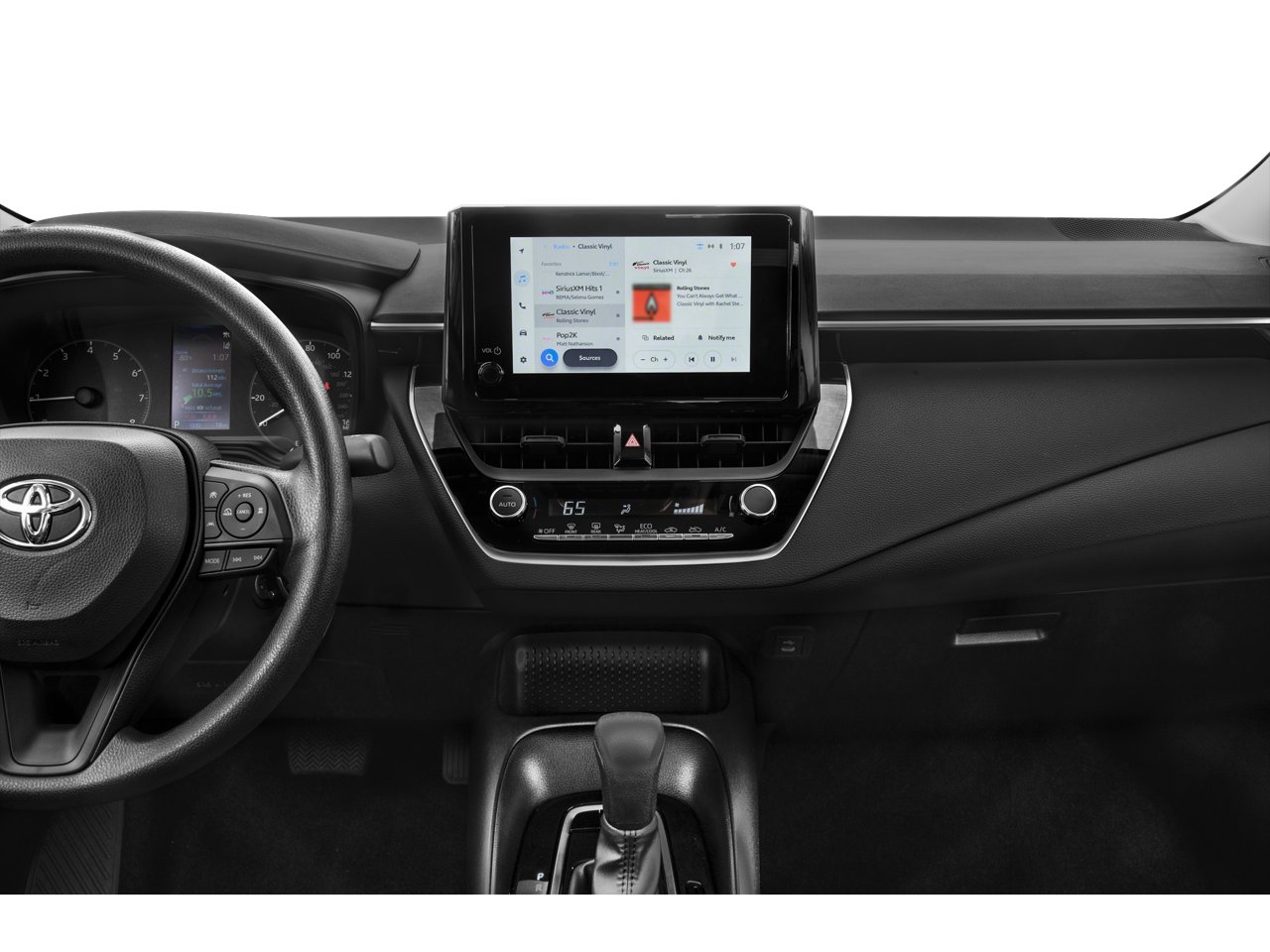 The Corolla's sleek and modern exterior design is further enhanced by body-colored bumpers and power-adjustable side mirrors, giving this sedan a refined and polished appearance.